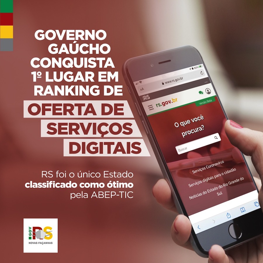 O Rio Grande do Sul alcançou um resultado inédito por meio do seu projeto de transformação digital, o portal rs.gov.br. O Estado figura em primeiro lugar no ranking nacional Índice de Oferta de Serviços Digitais 2021 da Associação Brasileira de Entidades Estaduais de Tecnologia da Informação e Comunicação (Abep-TIC), divulgado na sexta-feira (2/7).